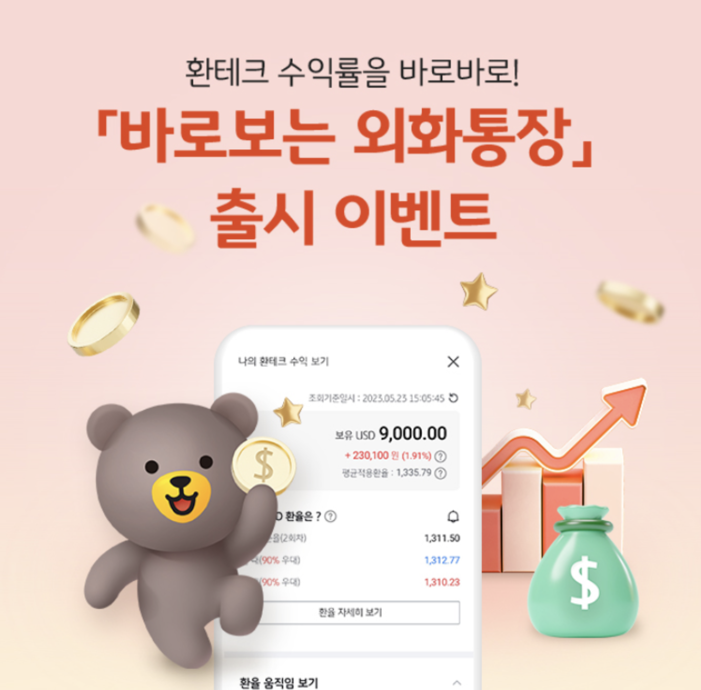 출시된지 한두닥 밖에 안된 상품입니다. 장점은 환율우대 90% , 보기편한 실시간 수익률, 금액, 횟수의 제한이 없다고합니다.