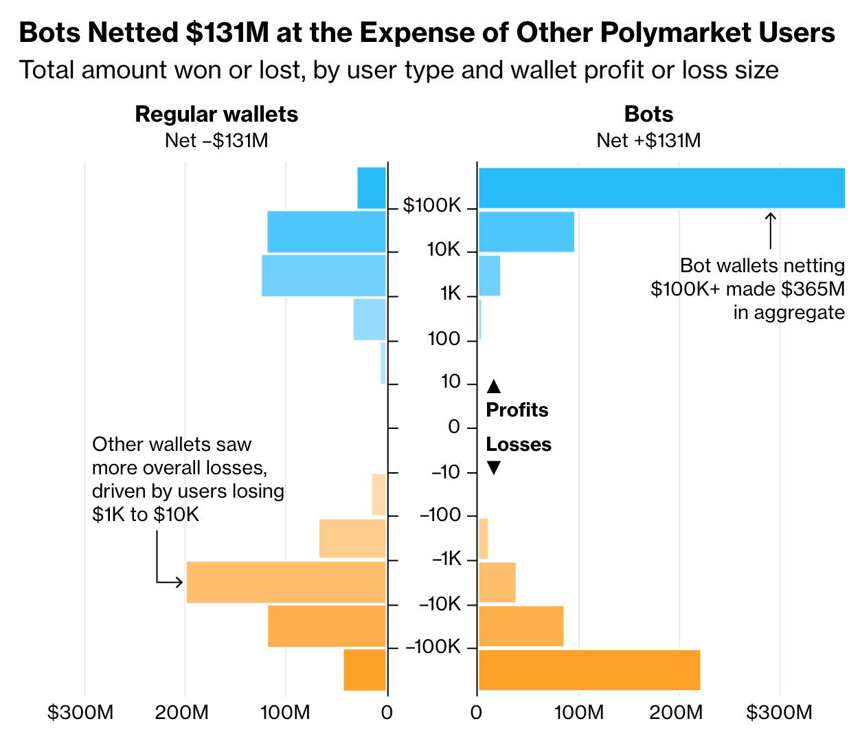 블룸버그가 Polymarket 데이터를 분석한 결과, 2025년 초 이후 활동한 지갑 중 10만 개 이상이 최소 1,000달러 이상의 손실을 기록했습니다. 이는 같은 기준으로 수익을 낸 계정 수의 거의 두 배에 달하는 수치입니다.