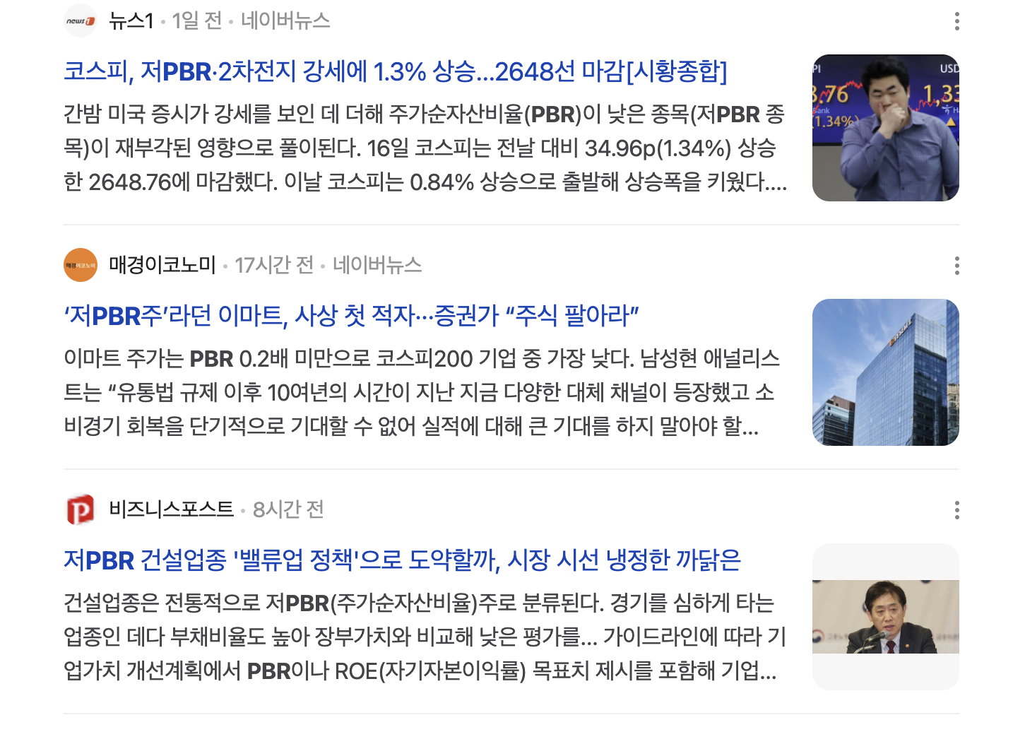 최근들어 저PBR 주식이 오른다며 무조건 주워담으라는 분위기가 고조되었습니다. 일본증시가 33년만에 최고를 기록했다고 하니 인기가 대단했습니다.  지금은 잠시 시들해졌지만 여전히 PBR 1이하 종목을 모으라는 각종 언론매체나 유투버들이 계속 생기고 있습니다.